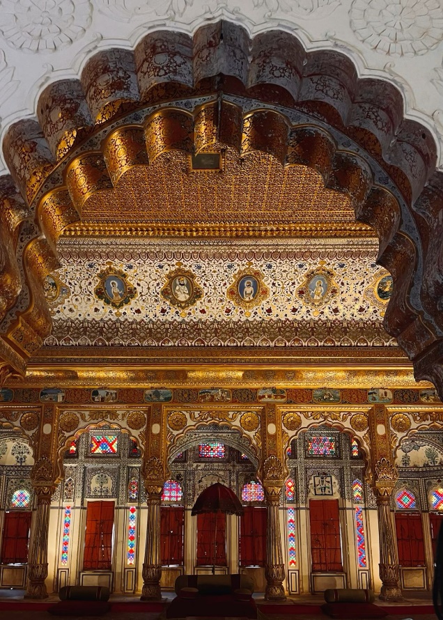 Росписи тоже уникальны. Здесь повествования о жизни раджей в персидском стиле соседствуют с картинами йогов во всех возможных асанах. Ибо прямо в храме есть своя школа йоги. Возможно, можно будет даже посмотреть занятия последователей в реальном, действующем храме.