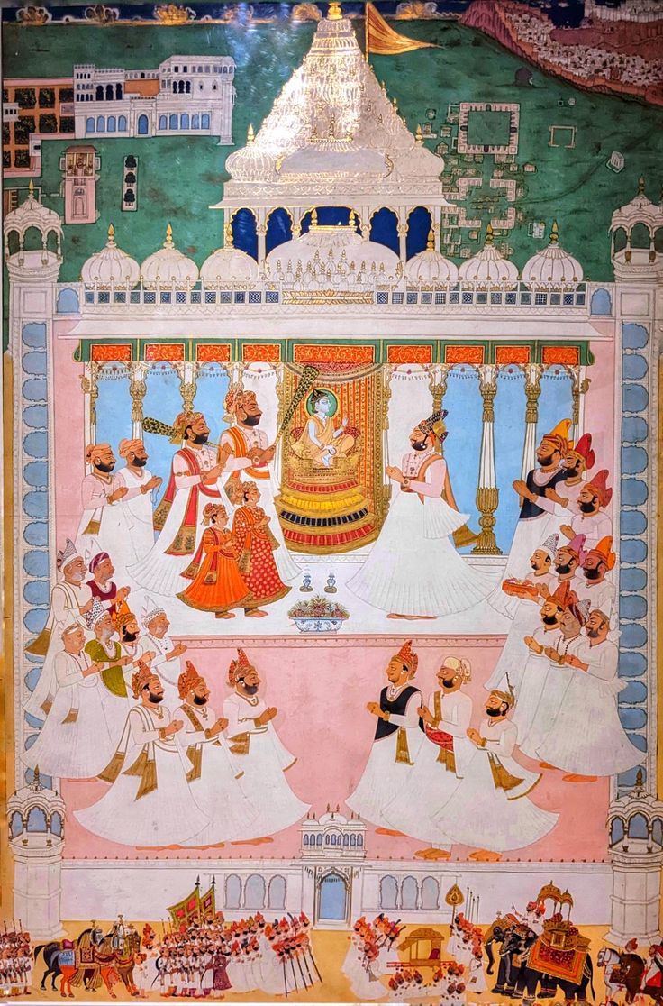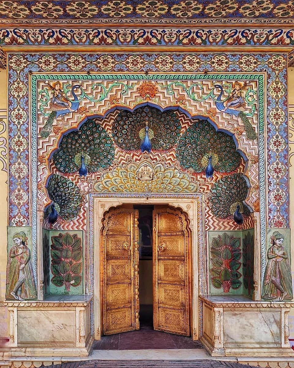 Росписи тоже уникальны. Здесь повествования о жизни раджей в персидском стиле соседствуют с картинами йогов во всех возможных асанах. Ибо прямо в храме есть своя школа йоги. Возможно, можно будет даже посмотреть занятия последователей в реальном, действующем храме.